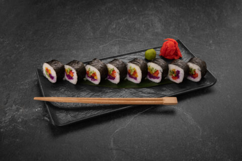 California Salmon Roll is a famous fusion roll, California roll, with salmon inside. It features buttery salmon, crisp cucumber, and smooth avocado, all enhanced by a touch of mayo for extra creaminess. Coated in vibrant orange masago, this roll offers a satisfying pop of texture and a well-balanced umami taste—a perfect fusion of classic California roll elements with rich salmon.